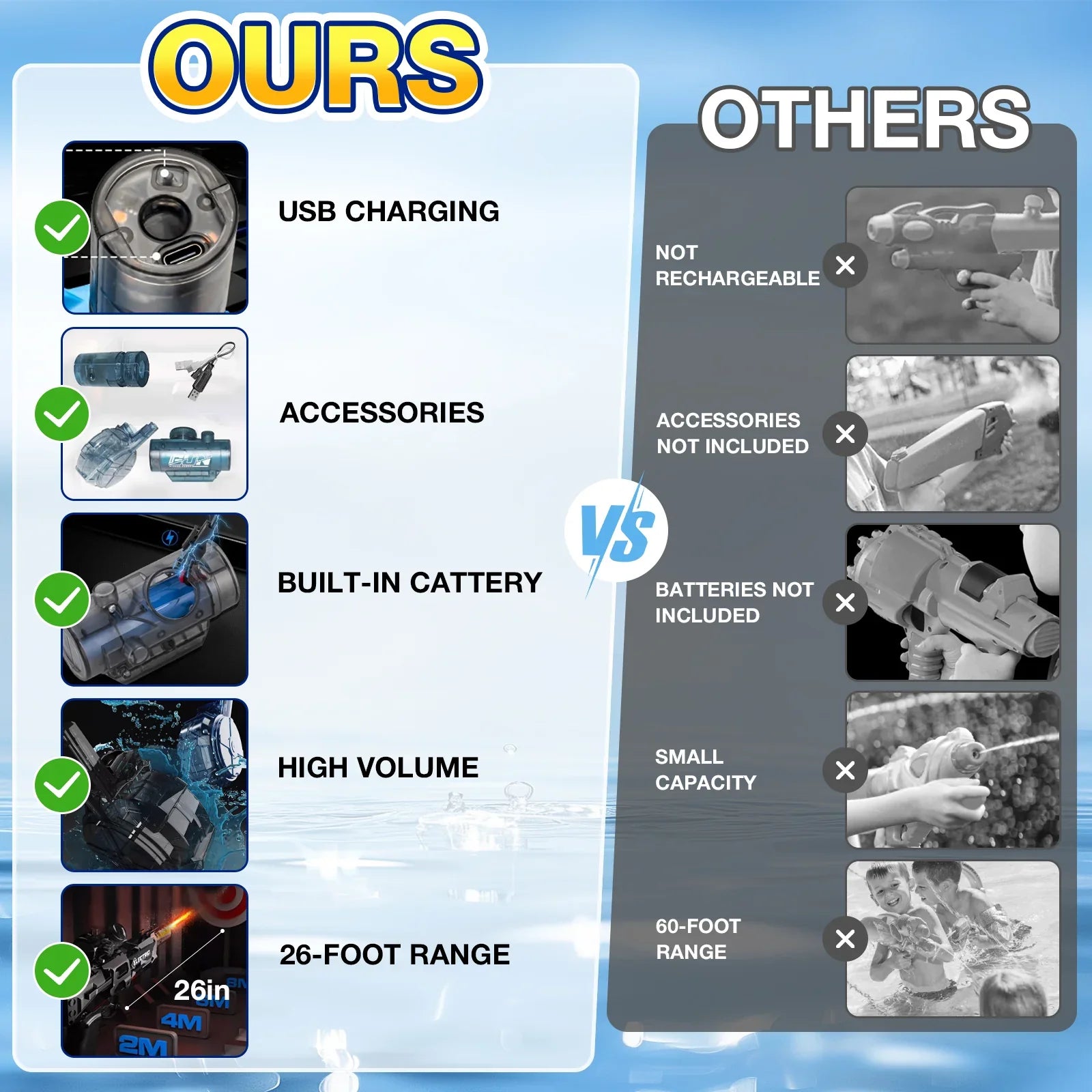 With cutting-edge technology and an upgraded tank, your water battles will never be the same. Experience the thrill of powerful bursts, realistic muzzle effects, and prolonged playtime.